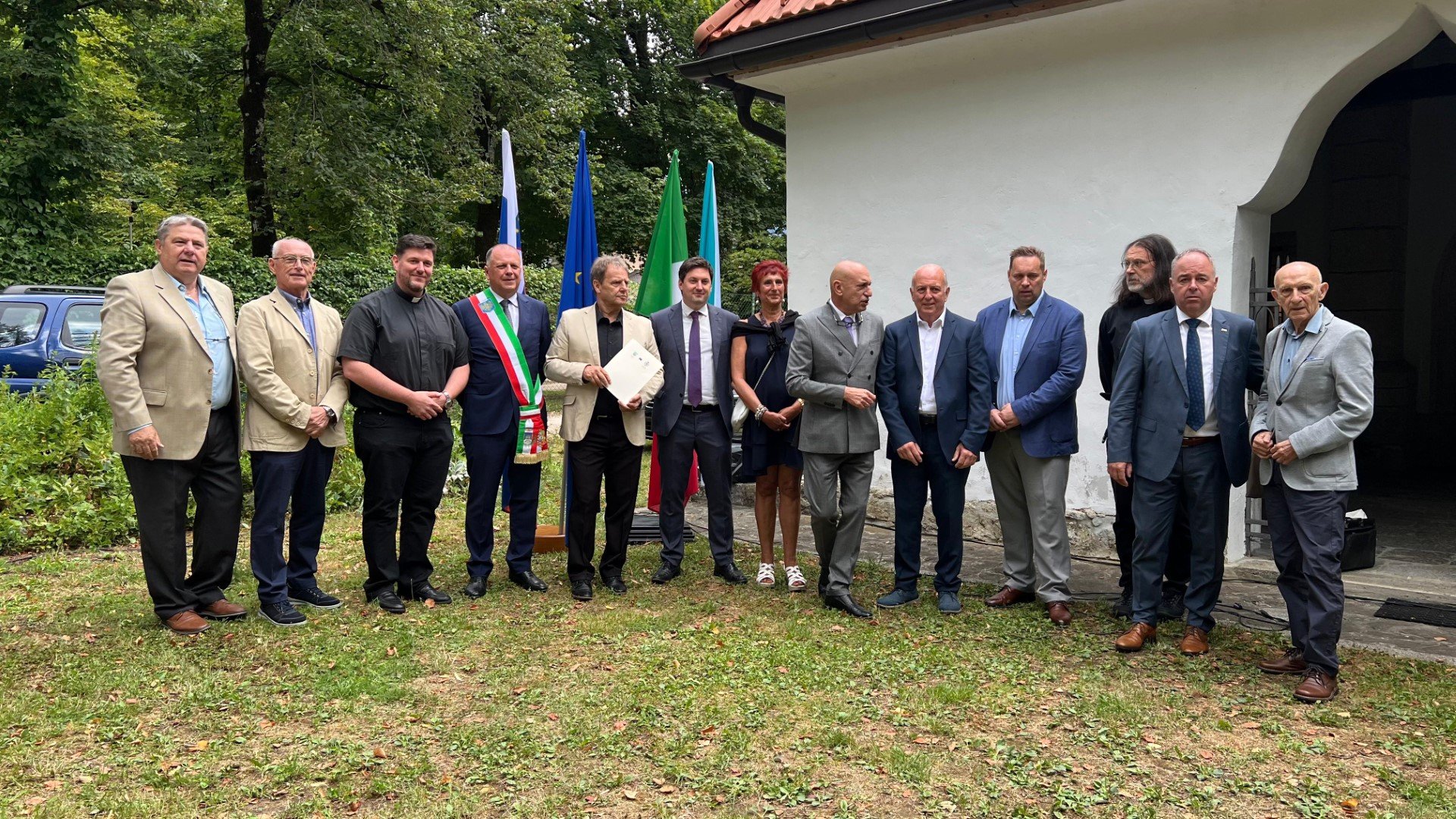 Po sveti maši se je dogajanje premaknilo v idilični prostor pred cerkvijo, kjer sta aktualna župana občin Bovec in Čenta Valter Mlekuž in Mauro Steccati najprej nagovorila vse udeležence, nato pa podpisala še listino o ponovni zavezi ohranjanja vrednot in usmeritev, zapisanih na listini: