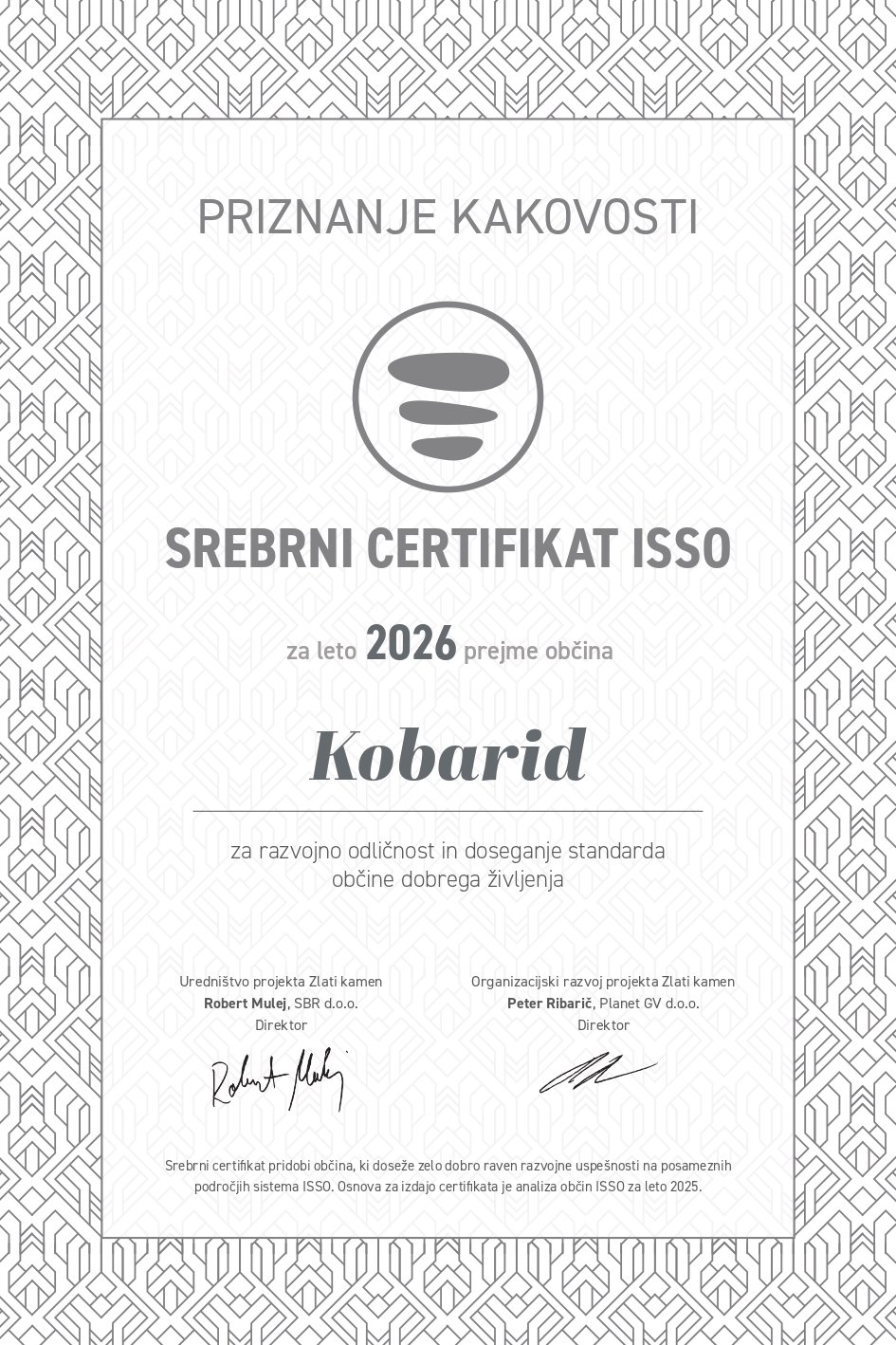 Srebrni certifikat je več kot le certifikat – je priznanje za kakovostno upravljanje, uspešno izvajanje razvojnih politik in ustvarjanje spodbudnega okolja za življenje in delo prebivalcev. Občina Kobarid je s tem del mreže občin, ki s svojimi dosežki predstavljajo zgled dobre prakse v Sloveniji.