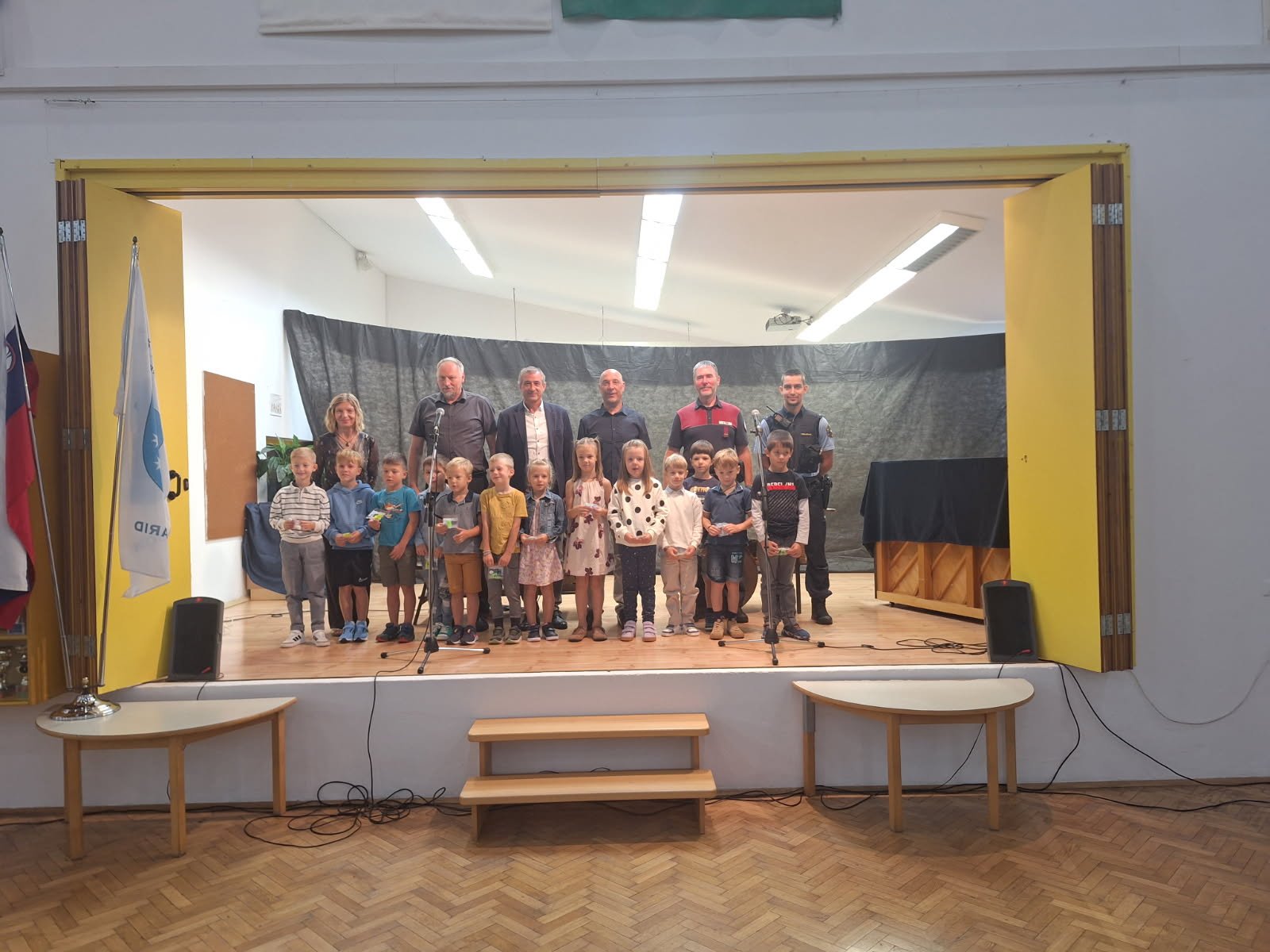 Občina Kobarid je vse prvošolke in prvošolce obdarila s simboličnim paketom: slovensko zastavo, besedilom himne Zdravljica, pesmijo Slovenec sem, knjigo Goriški slavček, odsevnim brezrokavnikom za varnost v prometu in letno premijo nezgodnega zavarovanja. V imenu Sveta za preventivo in vzgojo v cestnem prometu je otroke nagovoril občinski redar Vojko Fon, ki jih je spodbudil k varnemu ravnanju v prometu.