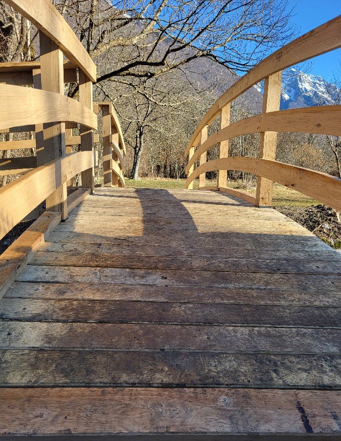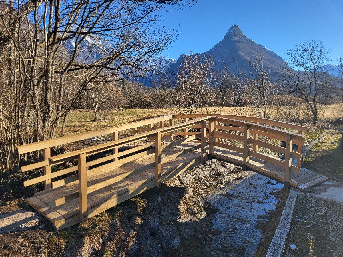 Občina Bovec je zaradi povečanja poplavne varnosti pristopila k porušitvi starega mostička čez potok Gereš in gradnji novega, saj je bil prejšnji mostiček postavljen niže nad gladino potoka in je ob naraslih vodah zaradi ozkega grla predstavljal poplavno nevarnost za okoliške objekte. Dela, ki so vključevala rušenje starega mostička, izkop in izdelavo novih betonskih temeljev, montažo jeklene nosilne konstrukcije, montažo lesene pohodne površine in postavitev lesene ograje, so zdaj zaključena in nov, lično izdelan mostiček je predan v uporabo. Izvajalec del je bil Višinska dela, Nejc Šerbec, ki je bil izbran s postopkom evidenčnega javnega naročila. Vrednost del znaša 14.363,06 evra (z vključenim DDV), investicija pa je financirana iz proračuna Občine Bovec.