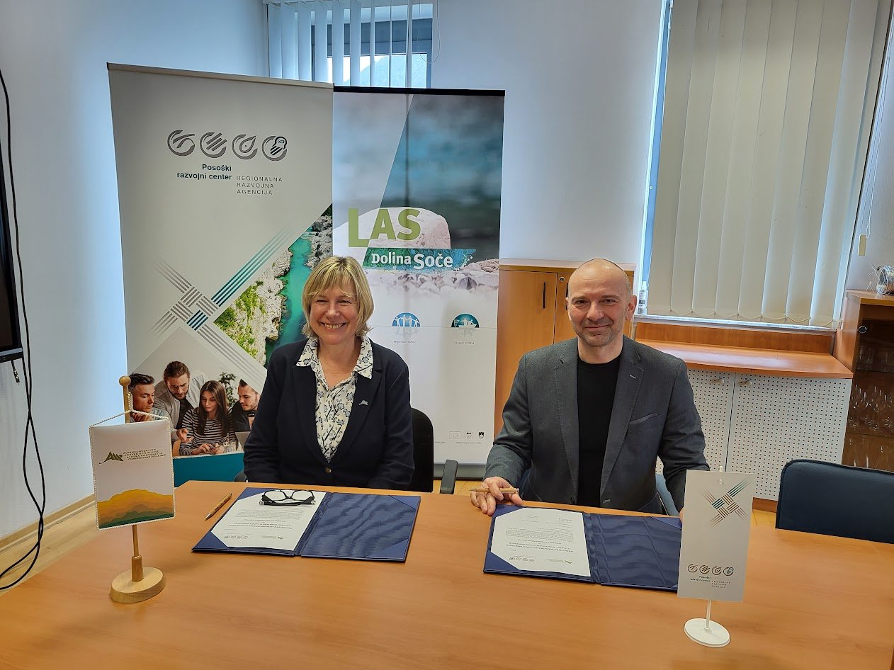 Direktor RRA Posoški razvojni center (PRC) Simon Škvor in generalna sekretarka Alpske konvencije Alenka Smerkolj, sta se danes s podpisom strinjala z obnovitvijo memoranduma o soglasju Stalnega sekretariata Alpske konvencije in Posoškega razvojnega centra za nadaljnje triletno obdobje. Info točka Alpske konvencije na PRC bo tako še naprej nadaljevala z aktivnostmi širjenja poznavanja Alpske konvencije in spodbujanja izvajanja konvencije v Sloveniji.