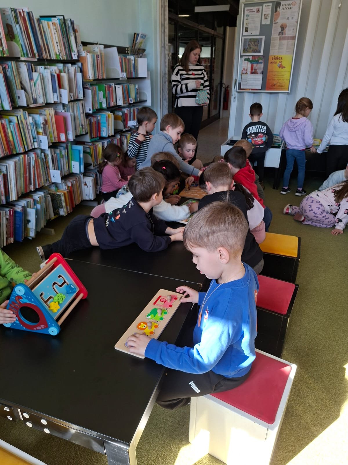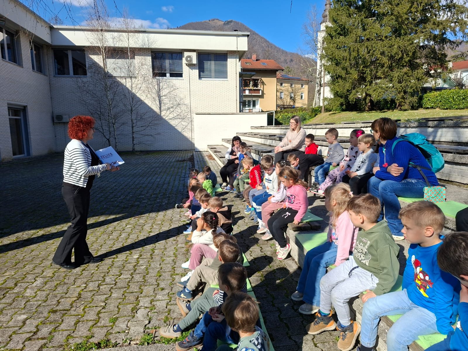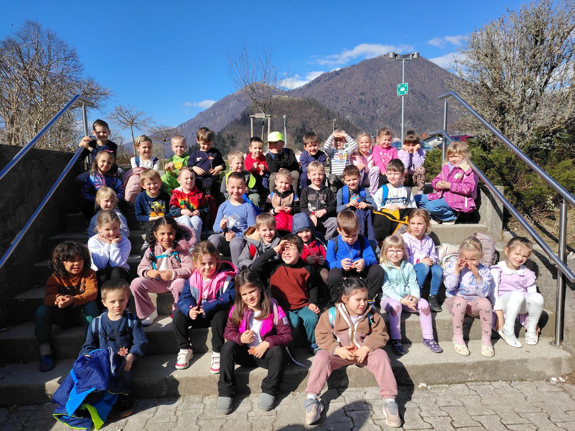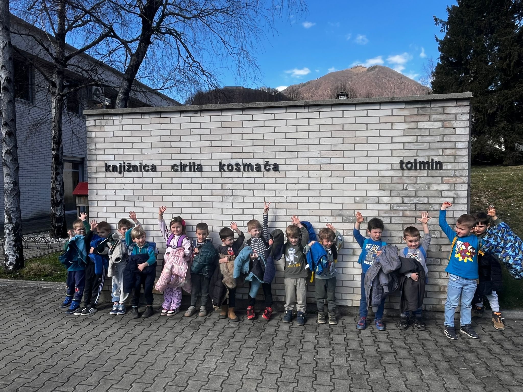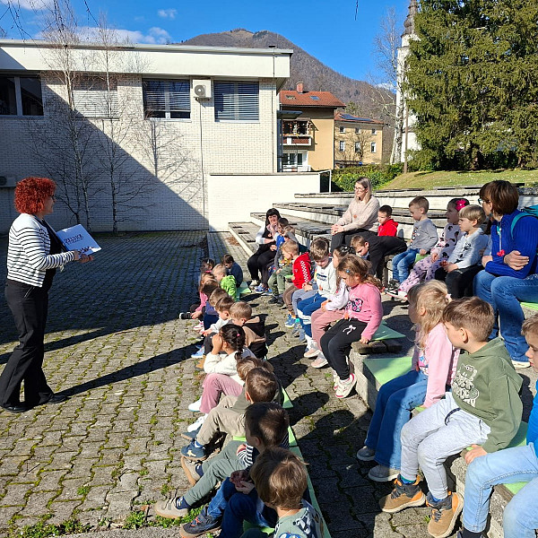 Tolmin – Otroci iz skupin Zajčki, Ptički in Barvice smo se v sredo, 25. februarja, z avtobusom odpravili na kulturno obarvan izlet v Tolmin. Za nekatere otroke je bila to prva vožnja, zato je bilo doživetje še toliko večje. Po prihodu v Tolmin smo obiskali Kinogledališče Tolmin, kjer nas je sprejela prijazna upravnica Špela. Najprej smo si v družbi otrok iz vrtca Tolmin ogledali kratke animirane filme o živalih, vsak izmed filmov pa je imel posebno sporočilo. Po ogledu nam je Špela predstavila prostore kinogledališča, spoznali smo tehnika, ki ima pomembno vlogo pri predvajanju filmov, ustavili smo se v garderobi, kjer se nastopajoči pripravljajo za svoj nastop, za konec pa smo si ogledali še galerijo, v kateri so bila razstavljena čudovita likovna dela. Sledil je obisk otrok v vrtcu Tolmin. Vsaka skupina je na različen način preživela nekaj časa z njimi, ena se je odpravila na sprehod, druga se je preizkusila na njihovih igralih. Skupaj smo preživeli nekaj lepih trenutkov, se družili in prepustili igri. Sledila je malica in slovo od novih prijateljev, a verjamemo, da se bomo spet srečali na kakšnem skupnem dogodku, da vezi, ki smo jih začeli plesti, le še poglobimo in ohranimo. Naši koraki so se že napotili naprej v Knjižnico Cirila Kosmača Tolmin, kjer nas je sprejela prijazna knjižničarka Polonca. Popeljala nas je skozi vse hodnike in med police, polne knjig. Najdlje smo se zadržali v pravljični sobi, ki je namenjena prav otrokom, v njej pa je poleg knjig še veliko didaktičnih igrač. Ker nam je bilo vreme izredno naklonjeno, smo čas za pravljico izkoristili kar na stopnicah pred knjižnico, kjer nam je Polonca pripovedovala zgodbo o želvi, ki je odkrivala svet. Z zanimanjem smo ji prisluhnili, saj smo se tudi sami znašli v tej vlogi, da smo odkrivali in raziskovali kotičke Tolmina.