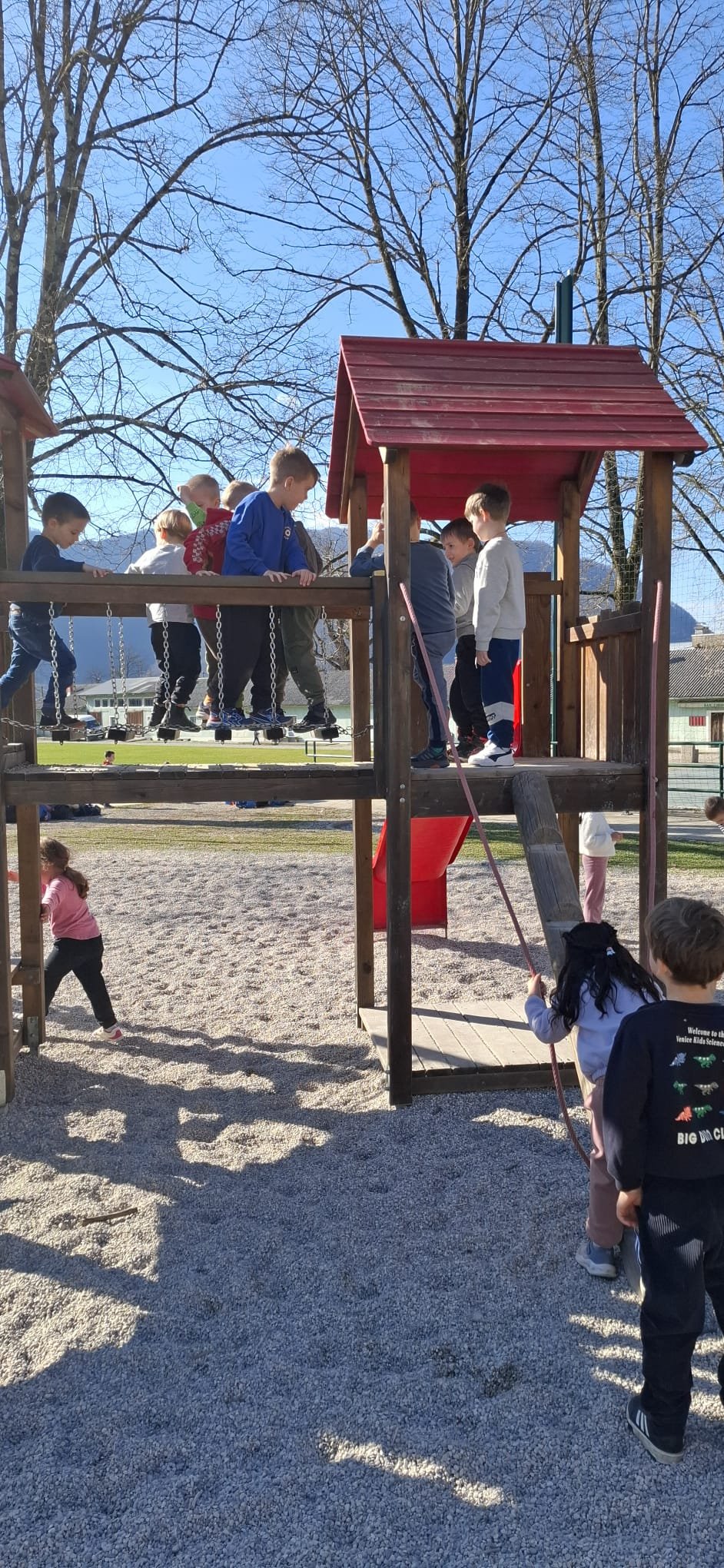 Pred odhodom domov smo se vsi skupaj znova zbrali na Brajdi, kjer imajo veliko igral za otroke. Tukaj smo se prepustili igri, se nadihali svežega zraku ter se sproščeno družili. Naš avtobus je že čakal, da nas popelje nazaj proti Bovcu in ker je vožnja s šoferjem Harijem minila brez skrbi, smo mu v zahvalo spesnili eno pesmico na hitro: »Na avtobusu smo se imeli zelo lepo, saj z našim Harijem ni (nikoli) nikomur slabo!«