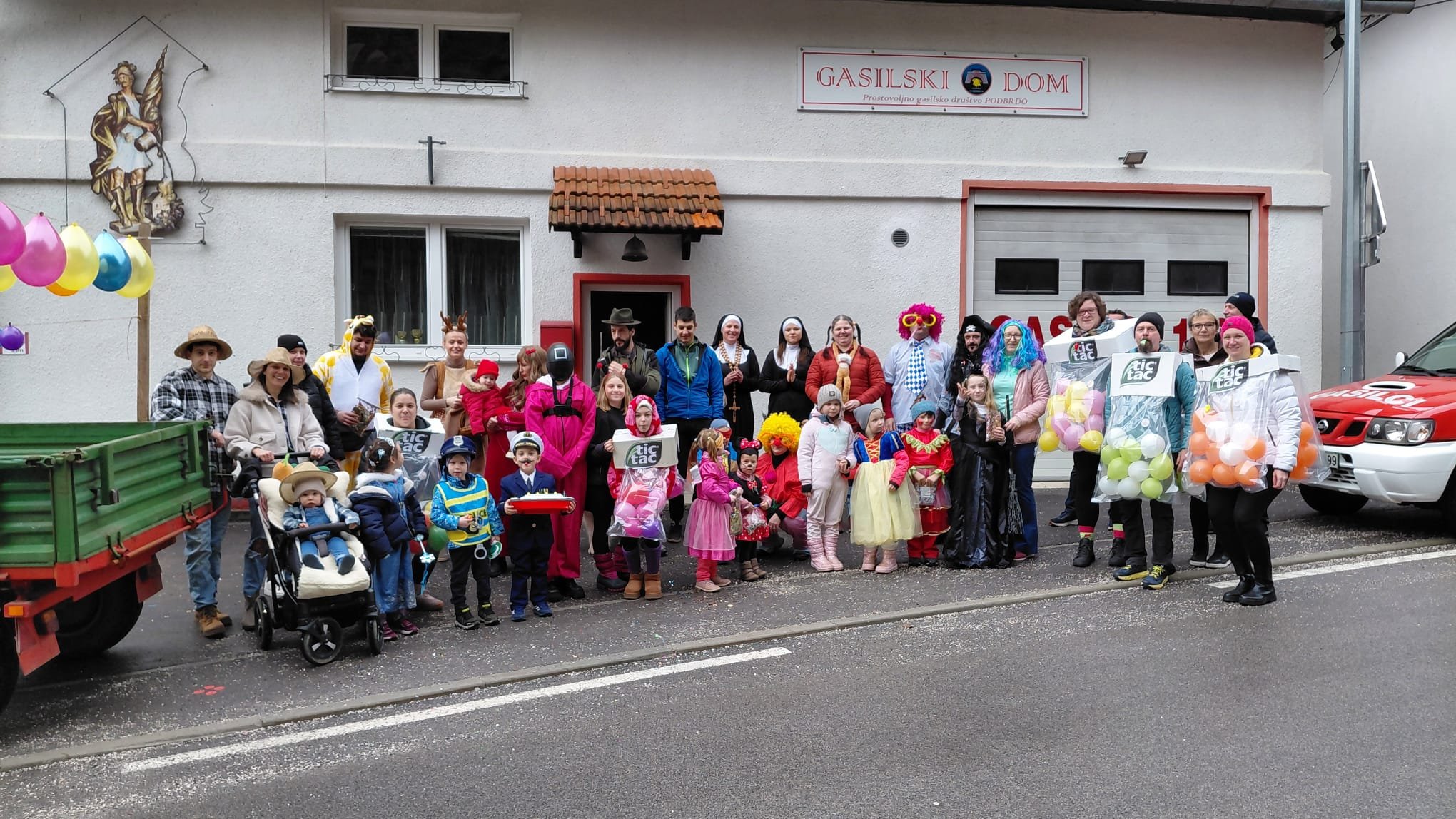 Pred gasilskim domom se je zbralo lepo število pustnih mask vseh generacij. Podbrdo so napolnili pravljični junaki, živali, klovni, superjunaki ter številne izvirne skupinske maske, ki so s svojo domišljijo in energijo navdušile obiskovalce. Posebno veselje so v povorko prinesli najmlajši, ki so s ponosom pokazali svoje barvite oprave in pogumno zakorakali po vasi.