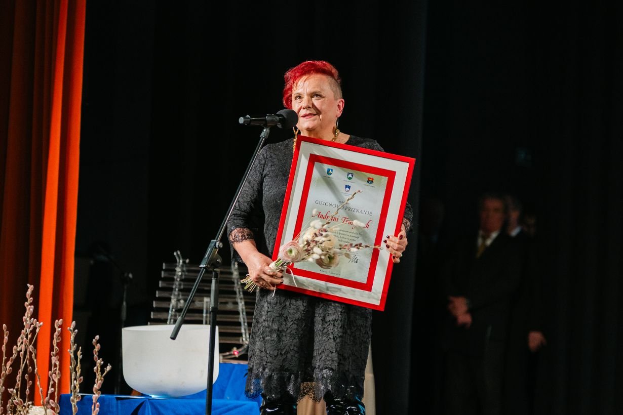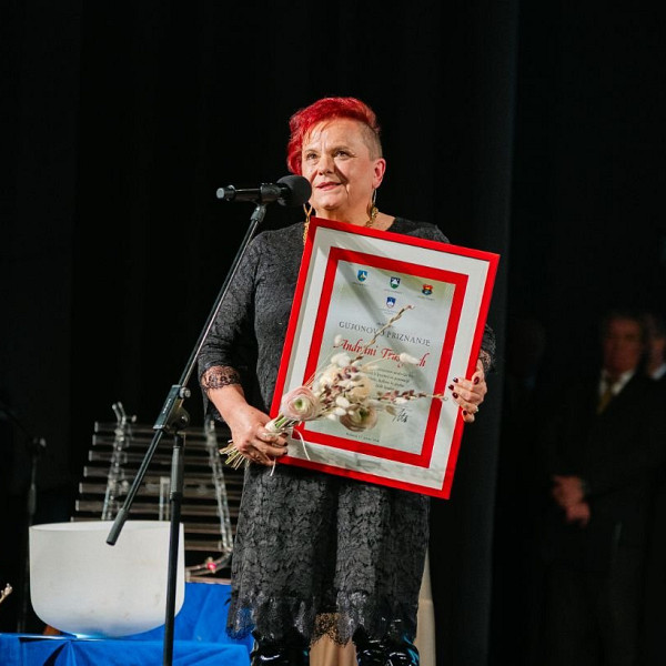 Andreina Trusgnach je priznanje prejela za izjemne dosežke na literarnem področju ter za dragocen in vztrajen prispevek k ohranjanju in uveljavljanju slovenskega jezika in kulture v Benečiji. Že od mladih let ustvarja v slovenskem beneškem narečju, ki ga dojema kot svoj prvi in najgloblji izrazni jezik, ter z njim zavestno kljubuje nevarnosti postopnega izginjanja narečne in jezikovne raznolikosti v Videnski pokrajini.