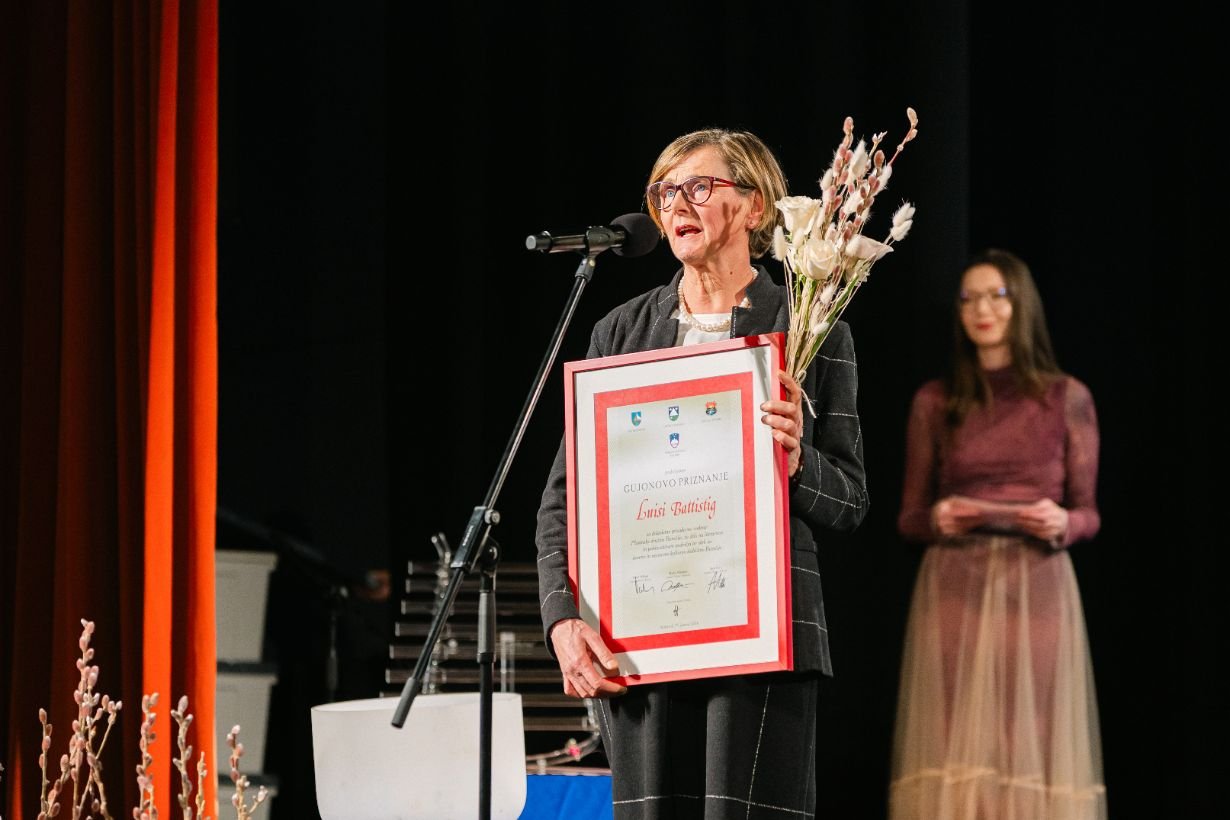 Luisa Battistig je priznanje prejela za dolgoletno in predano delovanje na področju ohranjanja kulturne in etnografske dediščine Benečije ter za pomemben prispevek k družbenemu in kulturnemu življenju Nadiških dolin. Živi na pobočju Matajurja, simbola tega prostora, in je že vrsto let tesno vpeta v delovanje slovenskih društev, zlasti Planinske družine Benečije, ki jo kot predsednica vodi od leta 2012.