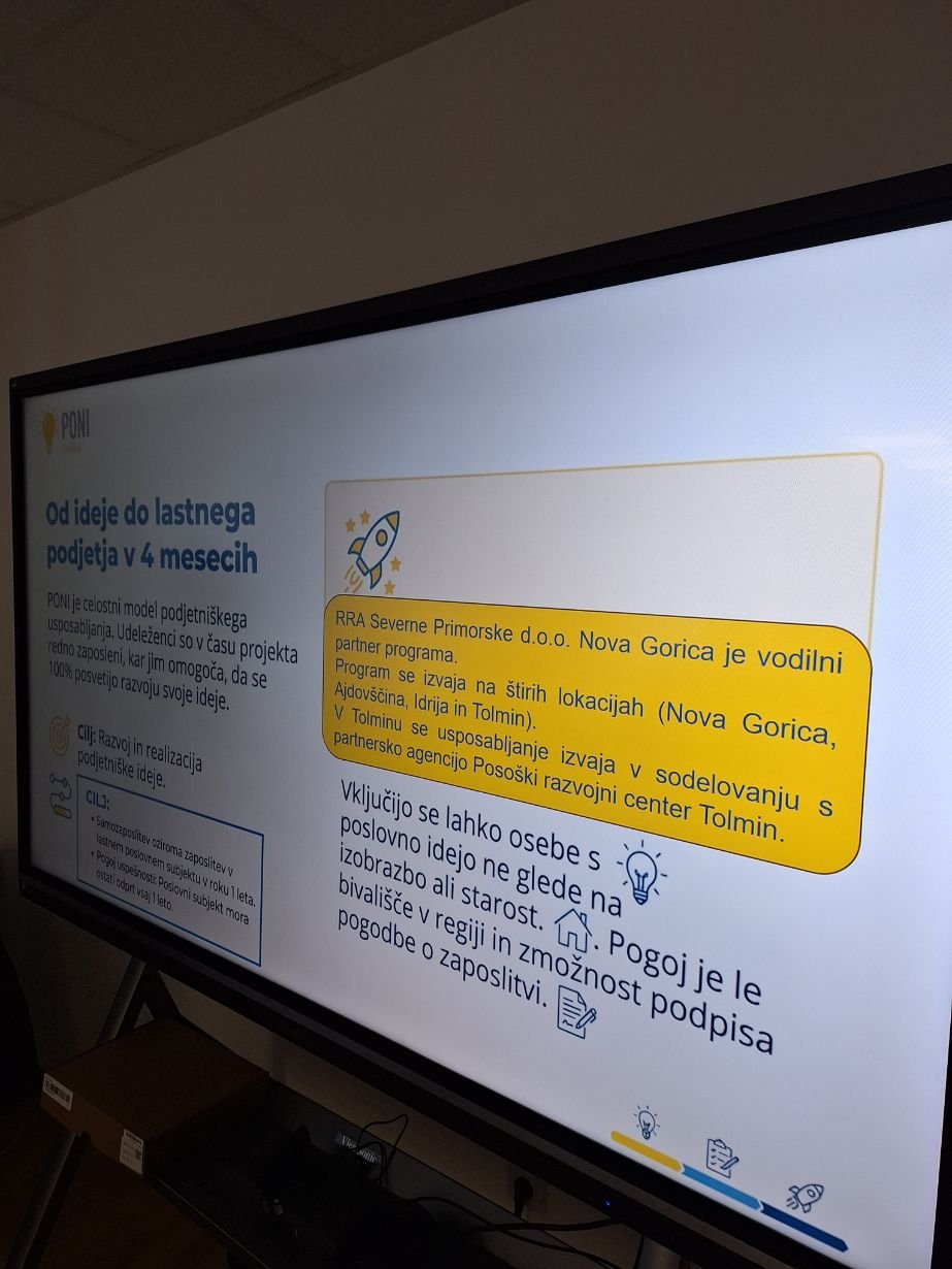 Danes se je v Tolminu začelo novo PONI usposabljanje, namenjeno posameznikom, ki želijo svojo podjetniško idejo razviti v konkreten poslovni projekt. Program Poni Goriška za območje severne Primorske vodi RRA Severne Primorske d.o.o. Nova Gorica, ki je nosilec programa in preko katere so udeleženci tudi zaposleni.